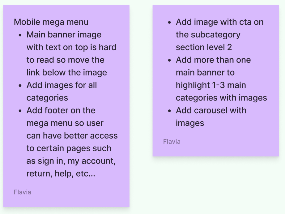 Wireframe process for the mega menu had started after the header was finalized.