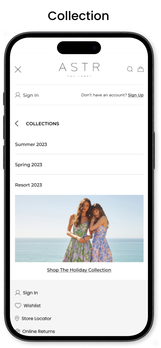 → Footer section added on the mobile navigation for easier access to my sign in/ sign out, wishlist, store locator, online returns, help and sign up.