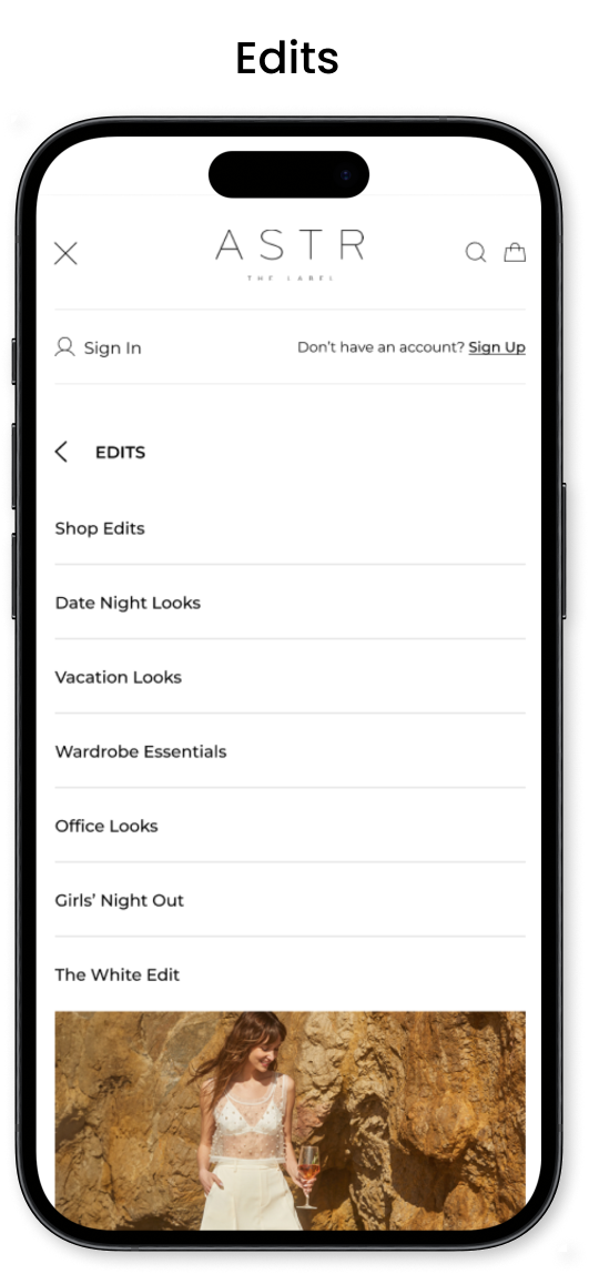 The focus was to combine all element and shorten the height of the header. After trying different layouts I decided to remove the text for the “search”, “sign in” and “bag” just keeping the icons. It gives a cleaner look and take less space on the navigation.