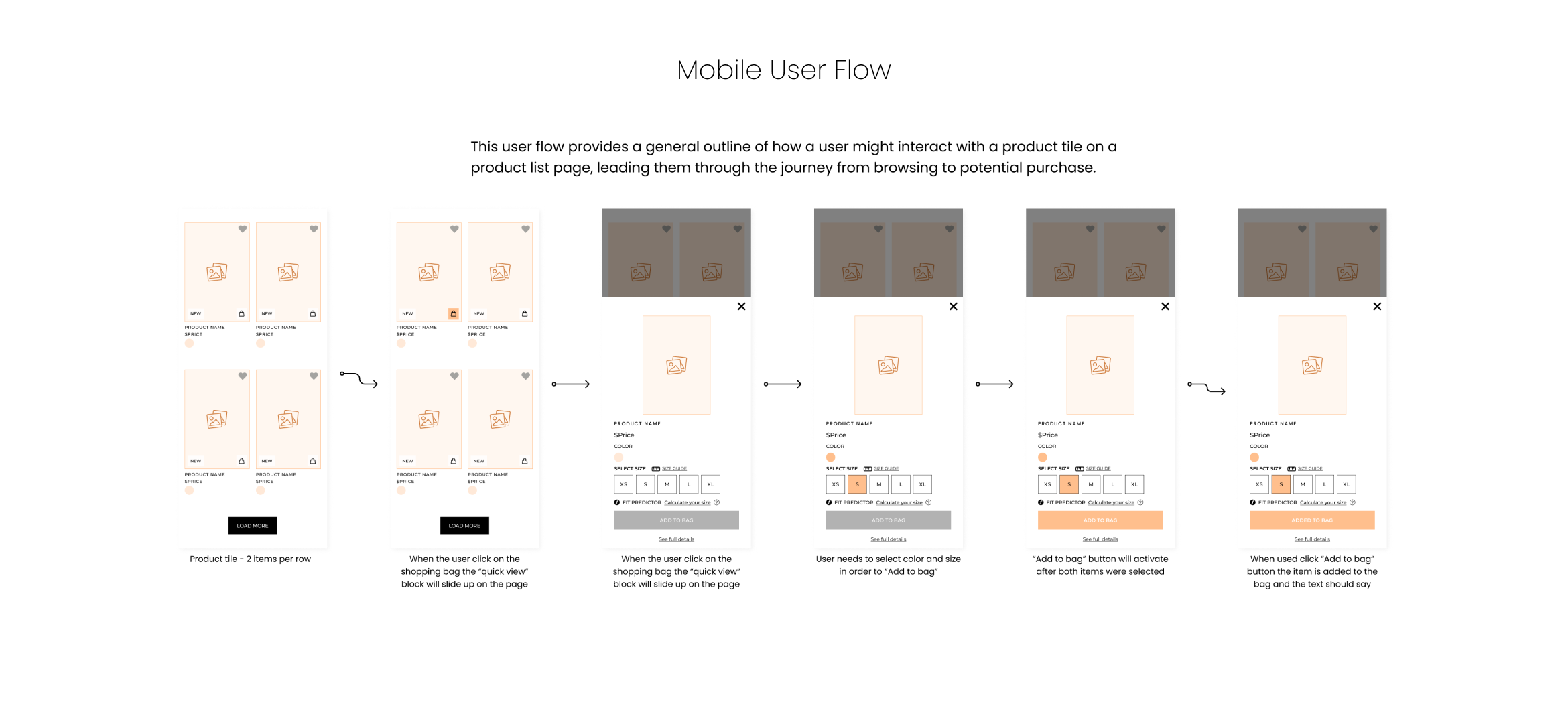 Here's a basic user flow for interacting with a product tile on a product list page: